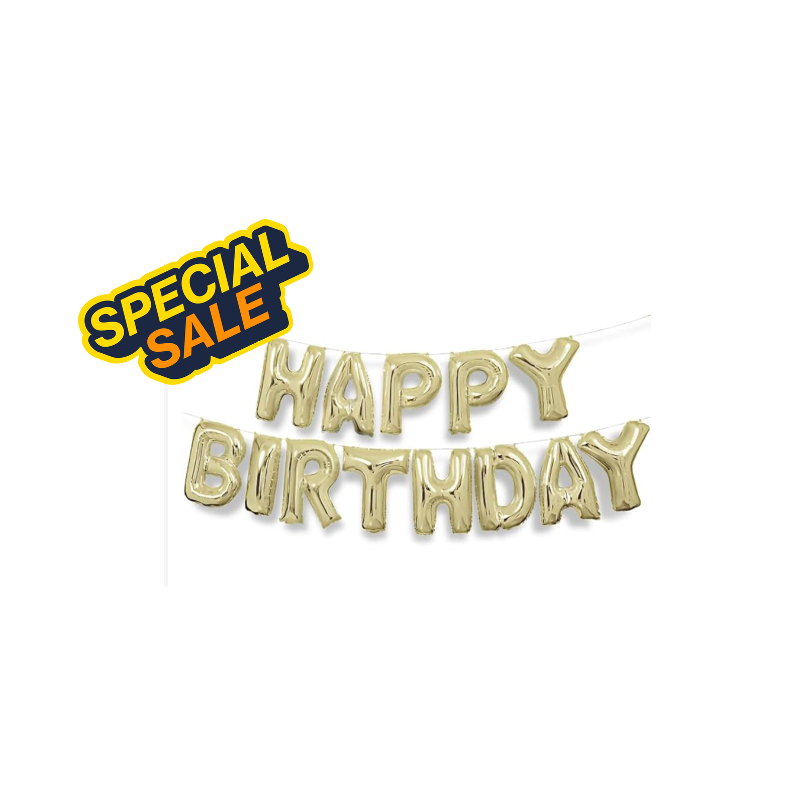 14 in Letter balloons that spell HAPPY BIRTHDAY in gold colour. AIR FILL ONLY